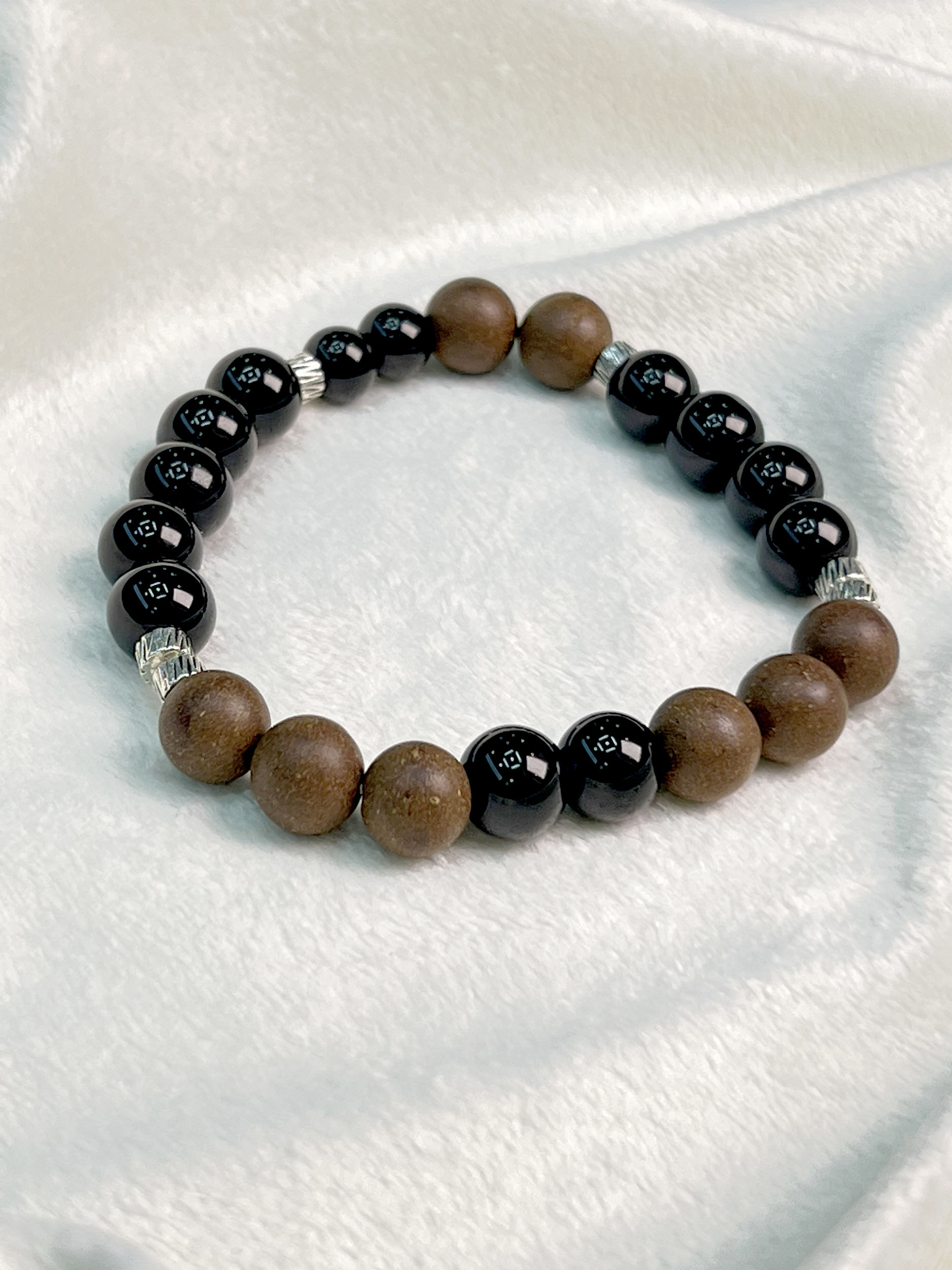Inspired by the quiet power of dusk, this bracelet channels the stillness of the falling night. The herbal beads carry the grounded calm of the earth, while the deep black obsidian mirrors the vast, protective night sky—together, they symbolize guarding the light within, even in the darkest moments.